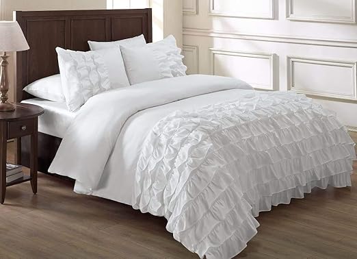 White comforter sets make the bed look irresistible. Comparison shop for queen comforter sets home in home. Delicate cotton voile comforter with ruching all over. Solid white cotton ruffled bedding queen king size duvet cover. Latitude ruby ruffle bedding comforter set, white: